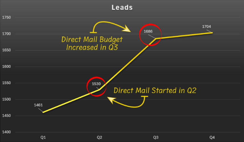 Our direct mail strategy led to a noticeable increase in leads starting in Q2, precisely when the campaign began. After increasing the direct mail budget in Q3, lead volume surged significantly and remained strong through Q4.